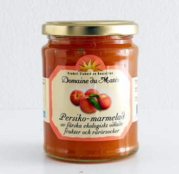 Ingredienser: persikor, rårörsocker, citronjuice, fruktpektin.